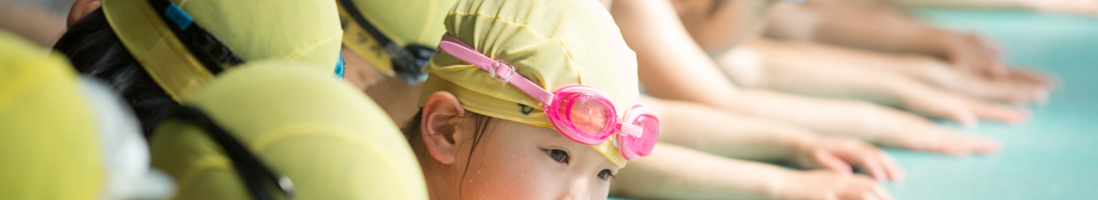 水慣れから始まり、最終的には四泳法(クロール・背泳ぎ・平泳ぎ・バタフライ)の習得を目指します。発育・発達に合わせ、楽しい水中遊技を主体とした練習から始まり、 徐々に「泳ぐ」練習に移行するカリキュラムを進めていきますので、ご安心してお任せ下さい。