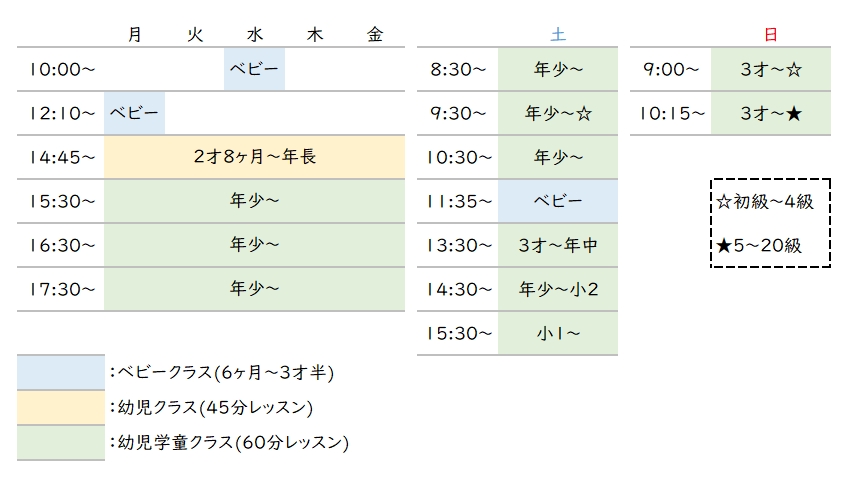 | 曜日/時間 | レッスンスケジュール(PDF)▶ |